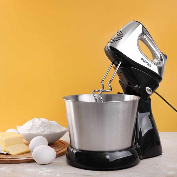 Geepas GHM5461 200W 2.5L Stand Mixer - Stainless Steel Mixing Bowl for Bread & Dough | 5 Speed Control, Eject Button, Turbo Function